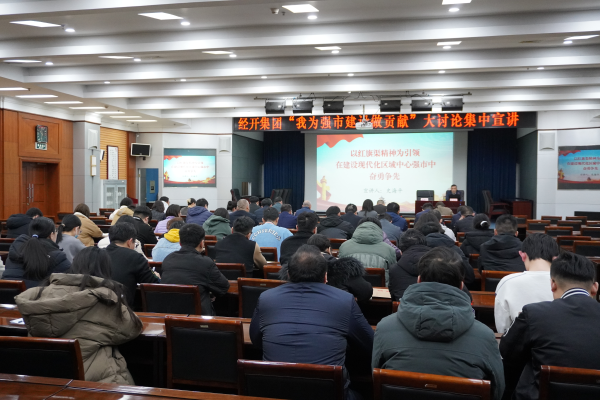 為推動(dòng)“我為強(qiáng)市建設(shè)做貢獻(xiàn)”大討論在集團(tuán)深入開展,營造人人了解、人人支持、人人爭(zhēng)先、人人參與強(qiáng)市建設(shè)的良好氛圍,3月6日上午,經(jīng)開集團(tuán)在財(cái)政局二樓綜合會(huì)議室組織召開“我為強(qiáng)市建設(shè)做貢獻(xiàn)”大討論集中宣講會(huì),邀請(qǐng)市委大討論工作宣講團(tuán)成員、市農(nóng)業(yè)農(nóng)村局四級(jí)調(diào)研員史海平同志為與會(huì)同志作專題宣講,集團(tuán)黨委委員、副總經(jīng)理左長(zhǎng)虹主持會(huì)議。