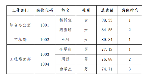 根據(jù)安陽市景欣生態(tài)林業(yè)有限公司(以下簡稱:景欣林業(yè))2023年公開招聘工作人員工作程序,經(jīng)過筆試、面試和考察等程序,擬錄用6名工作人員,現(xiàn)予以公示。公示期7天,即6月18日—6月24日,公示期間如有問題,請向景欣林業(yè)公司綜合辦公室反映。
