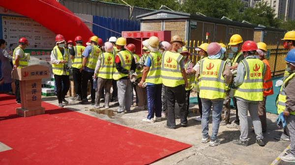 啟動儀式上還進(jìn)行了消防應(yīng)急演練,并為項目一線工人分發(fā)了防暑降溫物資。