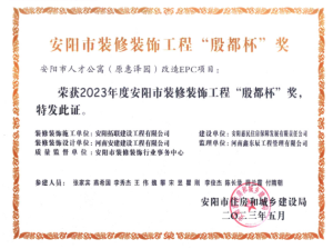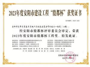 殷都杯”獎(jiǎng)是安陽市住建局為提高我市建設(shè)工程質(zhì)量,促進(jìn)建設(shè)工程參建各方加強(qiáng)質(zhì)量管理所設(shè)置的獎(jiǎng)項(xiàng),是我市建設(shè)工程質(zhì)量最高榮譽(yù)獎(jiǎng)。2023年上半年,安陽市住建局開展了本年度“殷都杯”獎(jiǎng)評(píng)選活動(dòng),通過復(fù)查審定,5月份對(duì)獲獎(jiǎng)的工程進(jìn)行了公示,并于上周正式下發(fā)相關(guān)榮譽(yù)證書。
