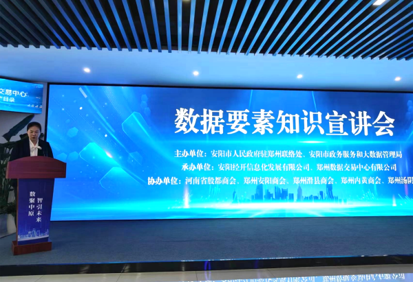 4月20日,集團信息化公司和鄭州數據交易中心共同組織的“數據要素知識宣講會”在鄭州中原數據產業(yè)大廈隆重舉行。安陽市人民政府駐鄭州聯(lián)絡處主任張雙印,安陽市政務服務和大數據管理局副局長常明華出席并發(fā)表講話。會上還邀請了河南省殷都商會等5家安陽籍商會成員及企業(yè)代表參加活動。